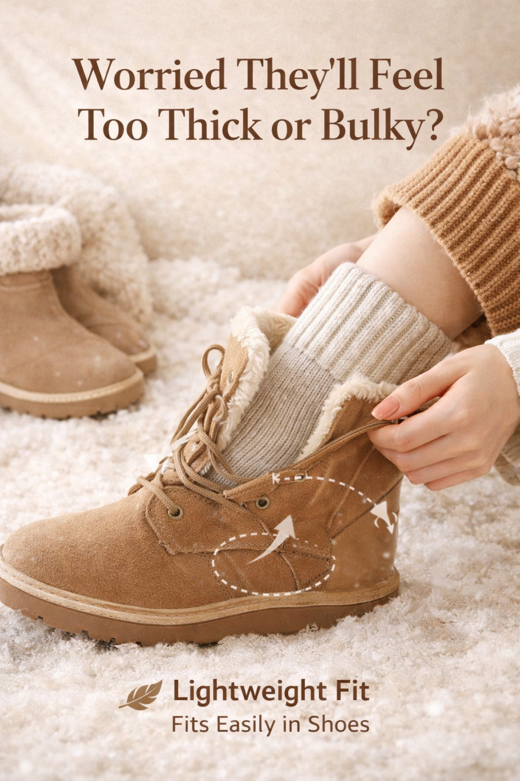 No. Lunasox are thickened for warmth but designed to stay flexible and low-bulk, making them easy to wear with boots and sneakers.